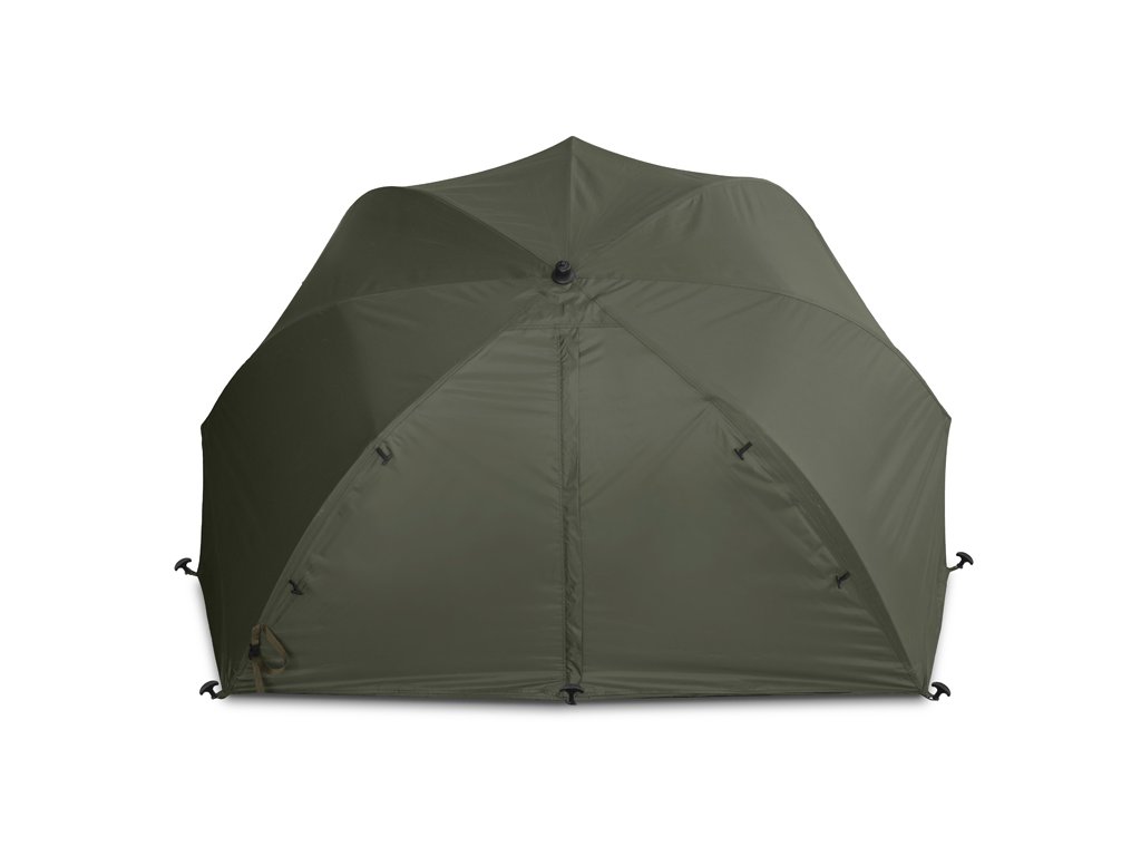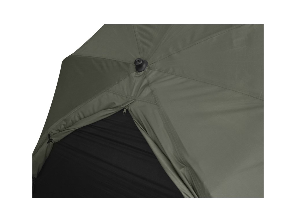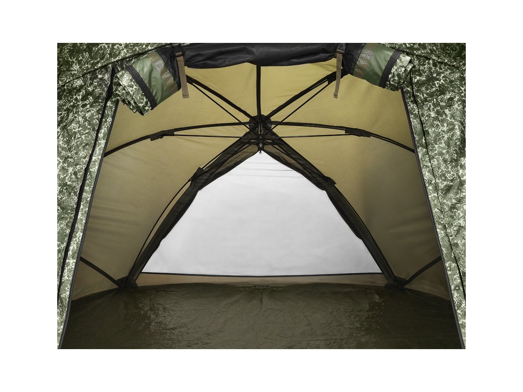 Brolly RAMBLER ponúka vďaka svojim rozmerom a možnosti rýchleho a jednoduchého rozloženia mimoriadne praktické riešenie najmä pre kratšie- pár dňové vychádzky k vode. Vďaka veľmi stabilnej konštrukcii, doplnenej o dve, tzv. búrkové tyče, poskytuje dokonalú ochranu pred nepriaznivým počasím a silným vetrom. K tomu samozrejme prispieva aj osvedčený materiál plášťa s dôkladne podlepenými švami. Takéto vyhotovenie zaručuje odolnosť aj pri výdatných úhrnoch zrážok bez možnosti zatečenia do vnútorného priestoru. Brolly je primárne navrhnuté na jedno lehátko, pričom vo vnútri ostane dostatočný priestor napríklad na kreslo, taškovinu, či inú výbavu potrebnú pre pohodlný pobyt pri vode. Výhodou je aj šilt nad vstupom, ktorý zabezpečí odtekanie vody pri daždi. Veľké moskytierové okná na prednom paneli a obrovské okno vzadu sa postarajú o vetranie a vynikajúcu cirkuláciu vzduchu, čím bude pobyt v tomto brolly príjemným aj počas teplejších letných dní. V prípade nepriaznivejších podmienok je možné všetky okná poľahky uzavrieť. Predný panel tvorí vizuálne veľmi zaujímavý prvok, ktorí poteší najmä priaznivcov C2G kamufláže a dodáva celému brolly punc originality. Okrem toho je možné ho v prípade potreby kompletne odopnúť a RAMBLER využívať ako jednoduchý prístrešok s dáždnikovou konštrukciou počas stabilného počasia či krátkych vychádzok k vode. Samozrejmosťou sú tiež dva úchyty FixROD, slúžiace na opretie a zafixovanie prútov. V balení je brolly dodávané spolu so základnou podlahou, ktorú je možné po obvode k stenám upnúť pomocou suchých zipsov. Za účelom pohodlného transportu dostanete aj praktické prenosné puzdro s pevnými rukoväťami. Technické parametre: Vonk. rozmer: 260x180cm Výška: 140cm Transp. rozmery: 150x20x20cm Hmotnosť: 8kg