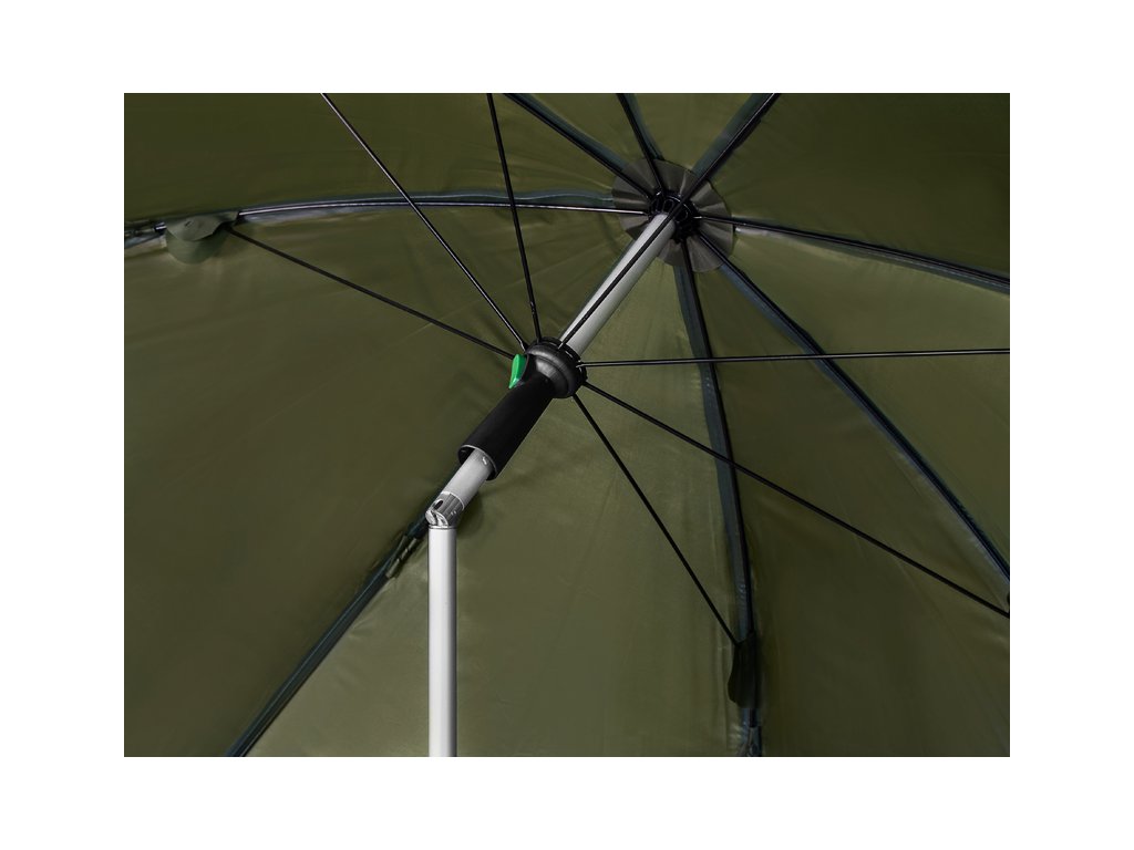 Delphin BigONE CARP je praktický dáždnik, ktorý vás dokonale ochráni pred nepriaznivým počasím počas vašich vychádzok k vode. Dizajn dáždnika bol špeciálne prispôsobený vyznávačom lovu kaprov, a to najmä vďaka veľkým a výrazným grafikám kapra na kupole a bočniciach dáždnika. Vďaka kupole s rozmerom 250cm a bočnicou siahajúcou do 3/4 obvodu vás dáždnik ochráni pred intenzívnym dažďom, silným slnkom, ale aj nepríjemným vetrom. Rozmery dáždnika poskytujú dostatok priestoru pre rozostavenie dvoch kresiel a malého stolíka. Teleskopická tyč umožňuje nastavenie výšky dáždnika a jej koniec je zakončený kvalitným hrotom pre zapichnutie do zeme. Pre zabezpečenie 100% nepremokavosti aj počas intenzívnych dažďov sú švy dáždnika za horúca kompletne podlepené vodeodolnou páskou. K dispozícii je bočná, predĺžená stena ktorá sa upevňuje pomocou kvalitného zipsu okolo kopuly. Spodná časť bočnice je osadená úchytmi pre upevnenie k zemi pomocou zaisťovacích kolíkov (kolíky sú súčasťou balenia). Dáždnik disponuje kĺbom na nastavenie sklonu kupoly, vďaka čomu sa viete lepšie chrániť proti slnečným lúčom ale aj vetru. Dáždnik s bočnicou Delphin BigONE CARP je všestranným, praktickým dáždnikom, ktorý vám umožní užívať si naplno voľné chvíle pri vode za každého počasia. Technické parametre : Max.výška dáždnika (až po vrch kupoly): 210cm Max.výška dáždnika (s upevnenou bočnou stenou): 200cm Priemer cez kopulu : 250cm Transportné rozmery: 140x10x13cm Váha: 3,1 kg