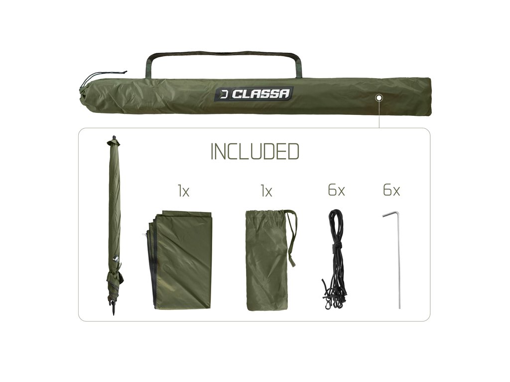 Dáždnik Delphin CLASSA je ideálnou voľbou pre krátkodobé vychádzky k vode počas daždivého, ale aj slnečného počasia. Vďaka kupole s rozmerom 250 cm a 3 bočnicou poskytuje vynikajúcu ochranu pred zrážkami či ostrým slnkom. Švy dáždnika sú za horúca kompletne podlepené vodeodolnou páskou pre zabezpečenie 100% nepremokavosti aj pri väčšom daždi. Pre lepšiu stabilitu vo vetre je dáždnik CLASSA vybavený štyrmi ukotvovacími lanami. K dispozícii je bočná, predĺžená stena ktorá sa upevňuje pomocou kvalitného zipsu okolo kopuly. Spodná časť bočnice je osadená úchytmi pre upevnenie k zemi pomocou zaisťovacích kolíkov (kolíky sú súčasťou balenia). Dáždnik disponuje kĺbom na nastavenie sklonu kupoly, vďaka čomu sa viete prispôsobiť slnečným lúčom ale aj vetru. Výšku dáždnika si prispôsobíte podľa potreby, čo zároveň uľahčí jeho upevnenie aj v členitejšom teréne. Delphin CLASSA je všestranným, praktickým dáždnikom, ktorý vám spríjemní pobyt pri vode za akýchkoľvek okolností. Technické parametre : Max.výška dáždnika (až po vrch kupoly): 210cm Max.výška dáždnika (s upevnenou bočnou stenou): 200cm Priemer cez kopulu : 250cm Transportné rozmery: 140x10x13cm Váha: 3,1 kg