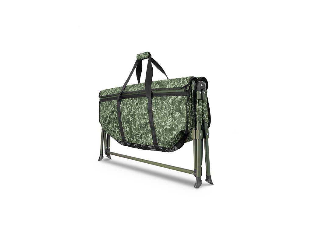 Luxusná, priestranná kolíska s nožnicovým systémom otvárania/zatvárania konštrukcie, ktorá poskytne dokonalú ochranu vašim úlovkom počas pobytu na brehu. Zvolený typ konštrukcie robí túto kolísku veľmi pevnou a zároveň ľahko skladnou. Konštrukcia je vyhotovená z trubiek o priemere 20mm, čo zaručuje jej stabilitu a odolnosť voči vonkajším vplyvom. Samotné lôžko je vyrobené z pogumovaného materiálu, ktorý nenasáva vodu ani pachy. Okrem toho je takýto materiál veľmi rýchlo schnúci a ľahko umývateľný. V spodnej časti kolísky je po celej dĺžke jemná pogumovaná sieťka, ktorá je navyše poistená popruhmi proti pretrhnutiu. Vo vrchnej časti kolísky sa nachádza pogumované látkové prekrytie so sieťovinovým priezorom. Toto prekrytie je fixovateľné pomocou suchého zipsu. Vďaka tomu vám úlovok nemôže z kolísky vyskočiť pri príprave napríklad na váženie či fotenie. Prekrytie je navyše navrhnuté v patentovanom C2G vzore, čím vám Cradle bude dokonale ladiť s inými produktmi z tejto jedinečnej série. Kolíska je opatrená textilnými madlami na uľahčenie prenášania v zloženom stave. Technické parametre: Rozmery: 100x65x35cm Transportné rozmery: 100x45x10cm