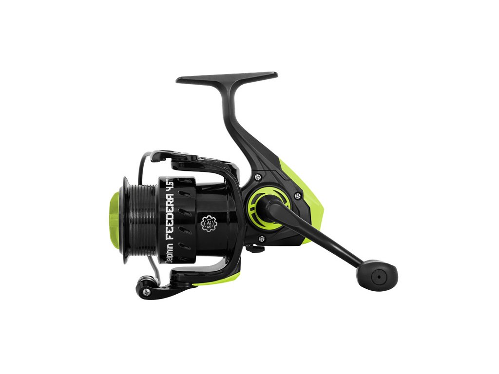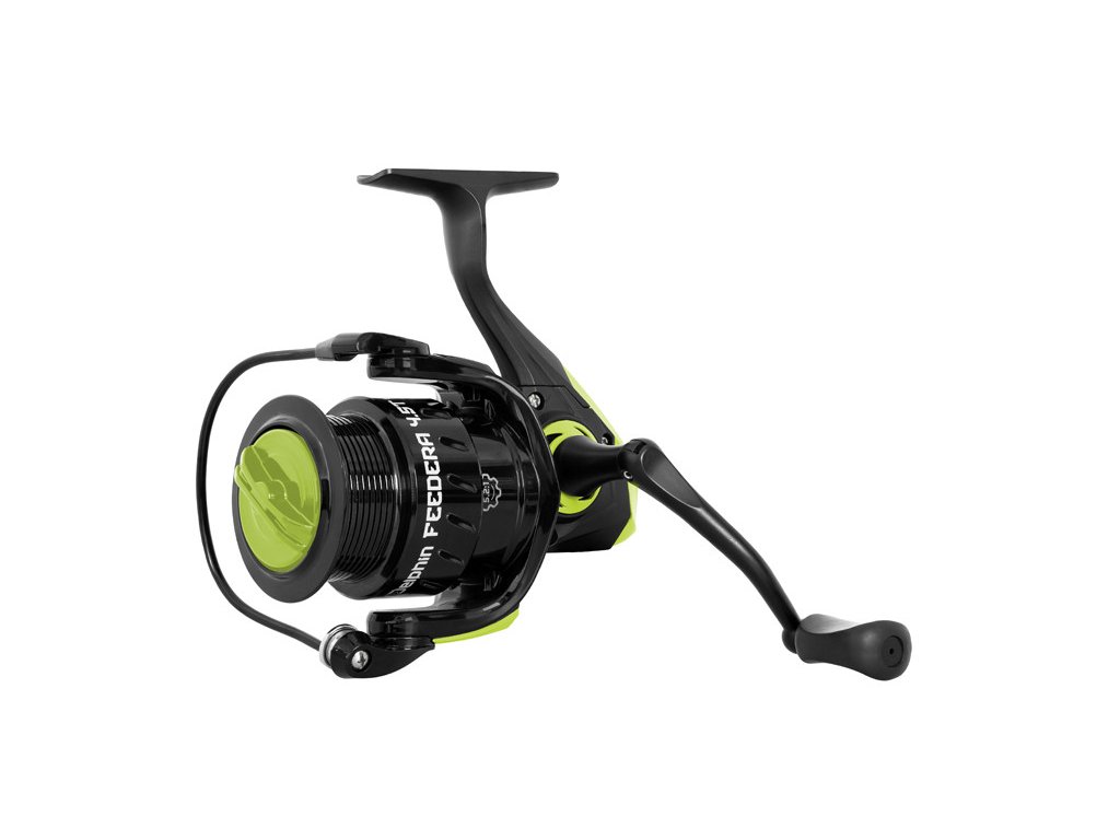 Navijak je vybavený siedmymi (6+1) guľôčkovými ložiskami a prevodovým pomerom 5.2:1, ktorý zabezpečí dostatočne rýchle sťahovanie montáže k brehu bez väčšej námahy. FEEDERA má tiež pevný nerezový hriadeľ a hrubý kovový preklápač s rolničkou zvyšujúci odolnosť a silu tohto modelu. Sklopná kľučka navijaku má čiernu matnú úpravu a čierne gumené madlo, ktoré sa príjemne drží v ruke. Brzda disponuje dostatočnou silou a zároveň poskytuje potrebnú citlivosť pri zdolávaní rýb na jemný feedrový prút.