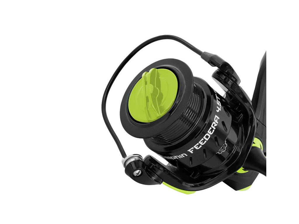Ako už názov nasvedčuje, tento model navijaka je špeciálne navrhnutý najmä na lov feedrovou technikou. FEEDERA má čierne telo s matnou povrchovou úpravou a výraznými zelenými detailami, čo z nej robí veľmi zaujímavý neprehliadnuteľný kúsok a perfektne sa hodí ku rovnomennému prútu a tiež ku príslušenstvu z rady REAXE.