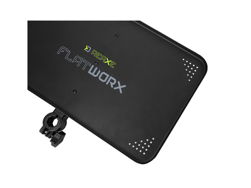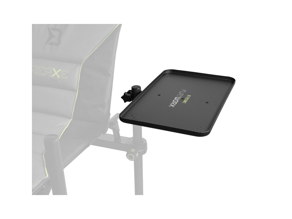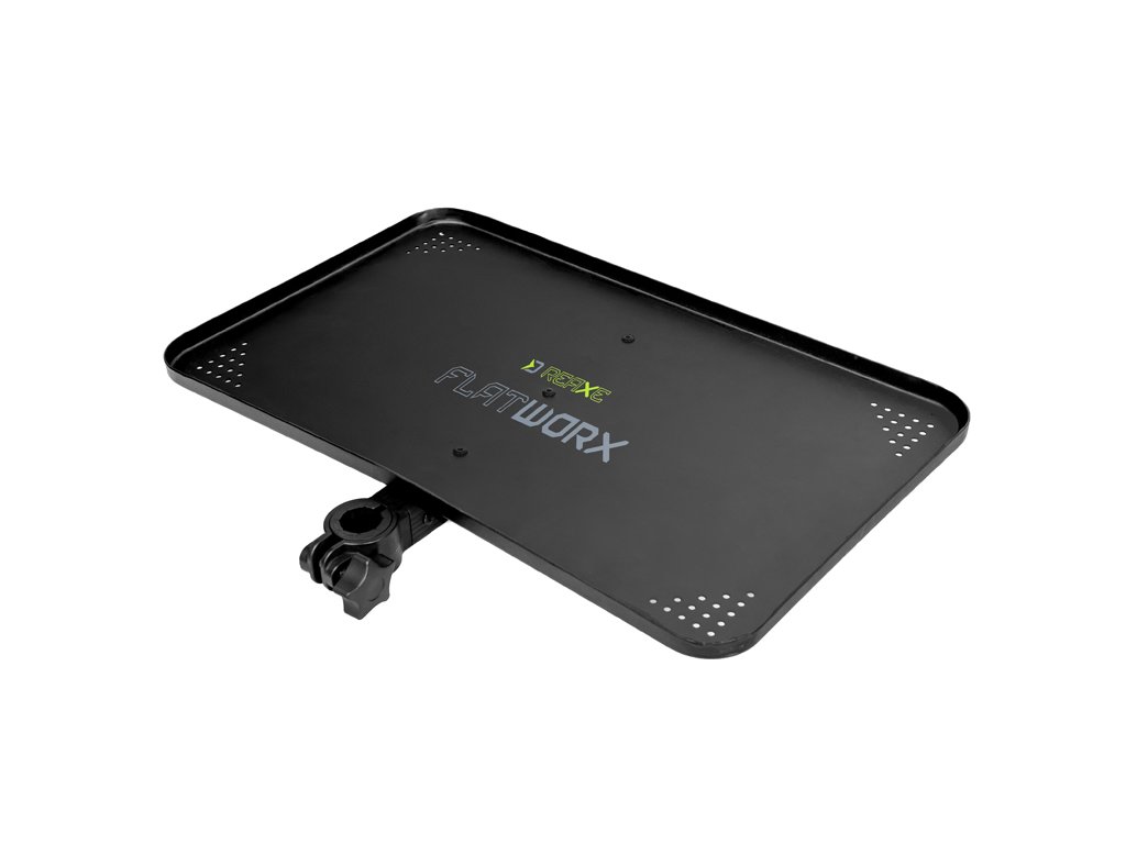 Je osvedčená feedrová tácka v novom pútavom pretekárskom dizajne REAXE. Tácka je primárne navrhnutá ako príslušenstvo k feedrovým kreslám a je opatrená univerzálnym úchytom s priemerom 25 mm. Samotný úchyt obsahuje vnútorný plastový konektor, ktorý po odobratí umožňuje uchytenie k nohám s priemerom 36 mm. Rovnako tak je možné uchytenie k štvorcovým profilom s dĺžkou strany 19 mm. Vďaka tejto univerzálnosti je možné tácku pripevniť k väčšine štandardne vyrábaných kresiel na trhu. Napriek tomu, že je určená pre lov feedrovou technikou, je možné ju upevniť aj k bežným kaprárskym či iným kreslám. FlatWORX je neoceniteľným pomocníkom pri tvorbe montáži, príprave kŕmenia, alebo si na ňu jednoducho uložíte potrebné komponenty k lovu, ktoré tak budú vždy doslova pod rukou. Vyvýšené okraje po celom obvode zamedzia pádu drobností na zem. Rohy tácky sú zaoblené, vďaka čomu nedôjde k možnému nepríjemnému zraneniu, ktoré by hrozilo pri ostrých rohoch. V každom z rohov je navyše niekoľko dierok. Máte tak istotu, že počas dažďa alebo v prípade rozliatia na tácke tekutina nezostane, ale spoľahlivo odtečie bez nutnosti demontáže tácky z kresla. FlatWORX je jednoducho univerzálny pomocník, vďaka ktorému budete pri vode pohotovejší a potrebné veci budete mať vždy po ruke. Technické parametre: Rozmery: 50x30cm Výška hrany pracovnej dosky: 12mm Priemer úchytu pre okrúhle profily: 25 mm Rozmer úchytu pre štvorcové profily: 19 mm