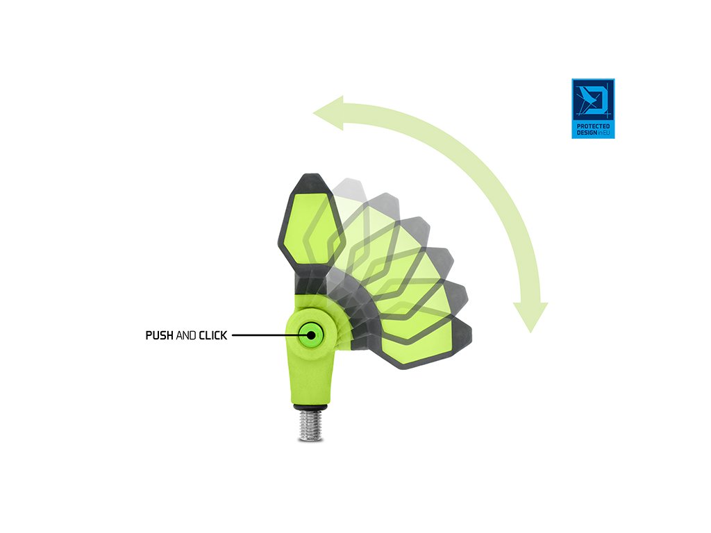 Prémiový feedrový držiak vysokej kvality vo farbách inovatívnej feederovej série Delphin Reaxe. Ako už názov napovedá, model Flexi je plne naklápateľný pomocou jednoduchého stláčacieho mechanizmu, ktorým umožňuje prispôsobiť sa rôznemu sklonu prúta, napríklad počas lovu na rieke, vo vetre, alebo z nerovného terénu. Vďaka dostatočnej šírke umožňuje upraviť polohu prúta po nahodení a tak docieliť optimálny ohyb špičky bez potreby nadmerného navíjania vlasca späť na cievku navijaka. Držiak je vyrobený z odolných materiálov, takže sa ľahko nepoškodí a nepoškriabe. Jeho špeciálne navrhnutý tvar poskytuje dokonalú podporu prúta a zabráni jeho vyšmyknutiu aj pri razantných záberoch. Povrch držiaka je potiahnutý pogumovaným materiálom, ktorý je extra šetrný k povrchu prúta a chráni ho pred poškodením. Univerzálny závit umožňuje uchytenie na všetky štandardné ramená, stojany a rázsošky. Na závitovej časti sa nachádza gumená podložka, ktorá zamedzuje otáčaniu držiaka. Držiak Flexi je možné použiť aj na lov s dvomi prútmi. Technické parametre: Celková dĺžka: 215mm