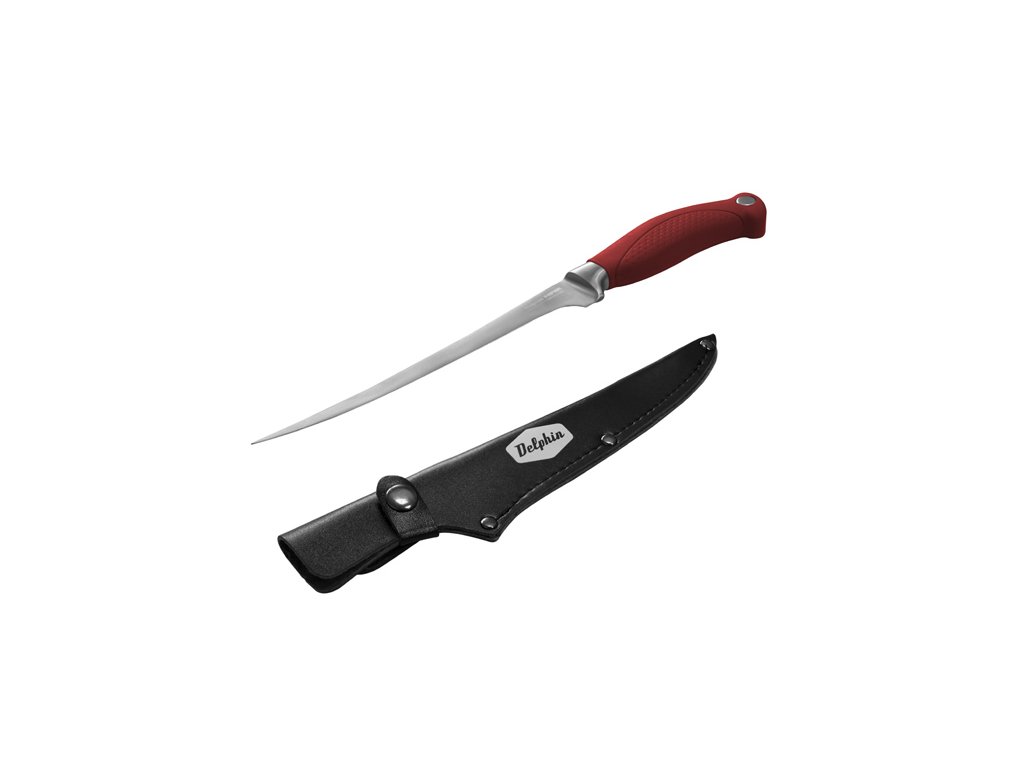 YAPAN je najvyšším radom série filetovacích nožov Delphin. Je vyrobený z kvalitnej japonskej nehrdzavejúcej ocele 440C, ktorá sa dobre brúsi a skvelo drží ostrie. Má veľmi komfortnú pogumovanú rukoväť s príjemným úchopom. Práca s týmto nožom bude zábavou. Hrot čepele je úzky, aby ste vedeli komfortne pracovať aj s najmenšími kusmi mäsa a detailne sa venovať napr. vyberaniu kostí. YAPAN si však určite obľúbia aj manželky rybárov, keďže filetovacie nože sú veľmi vhodné pri práci v kuchyni. Krájanie mäsa, ovocia a zeleniny... Možnosti sú takmer neobmedzené. K nožu YAPAN sa dodáva praktické koženkové puzdro s možnosťou zavesenia na opasok. Technické parametre: Celková dĺžka: 320mm Dĺžka čepele: 180mm Výška čepele: 18mm Hrúbka čepele: 1,3mm Materiál čepele: nehrdzavejúca oceľ Hmotnosť: 124g