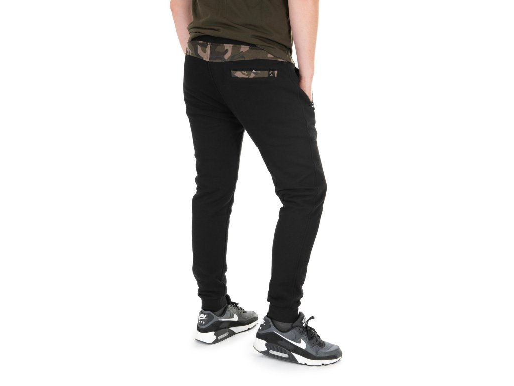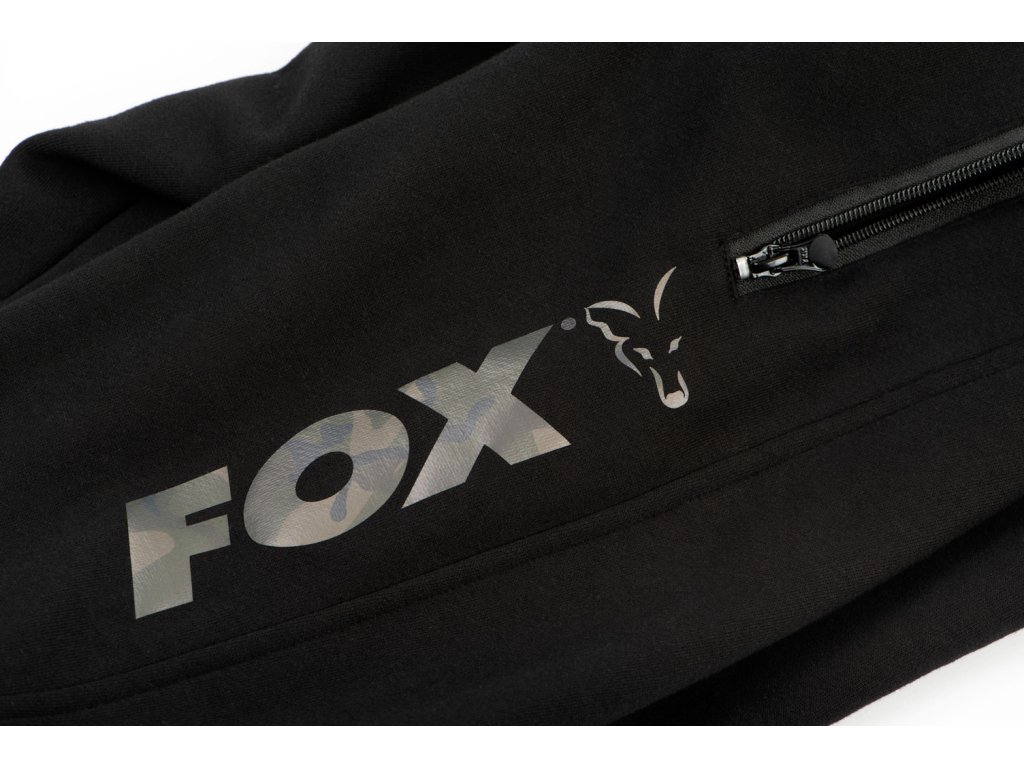 - Čierne joggery s vertikálnou potlačou Fox camo loga