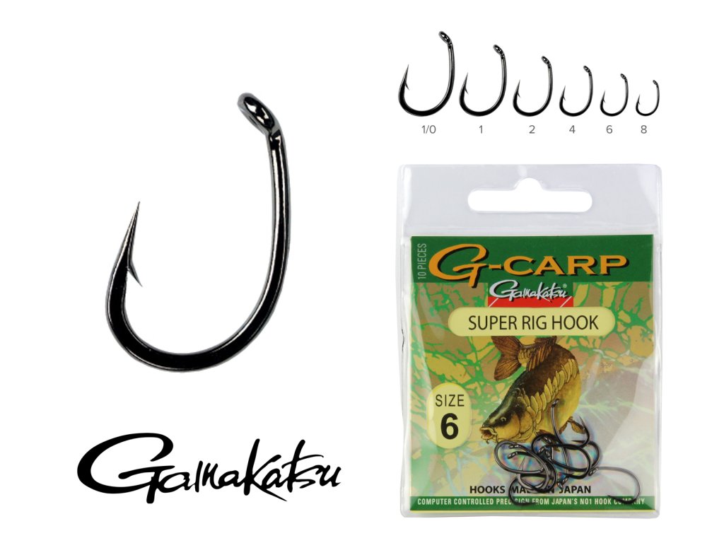 Čierny háčik s krátkou rúčkou s očkami, ktorých ušká sú mierne zahnuté dozadu smerom k háčiku.
