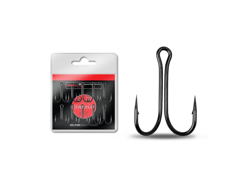 Háčiky čiernej série Delphin HOOKAIDO sú určené na dravce. Vynikajú hlavne vysokou výdržou, ktorá odolá agresívnym, aj silovým útokom. Vyrobené sú len z materiálov vysokej akosti. Majú výbornú ostrosť a extrémnu stabilitu tvaru. Delphin HKD DOUBLE je séria dvojháčikov tradičného a výborne fungujúceho tvaru. Sú vhodné na lov dravých rýb s mŕtvou aj živou rybkou. Technické parametre: - s očkom - s protihrotmi - prierez: okrúhly