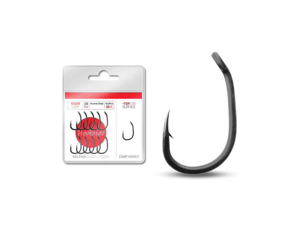 Háčiky bielej série Delphin HOOKAIDO sú najvyššou radou určenou výsostne na lov kaprov. Tieto háčiky vynikajú tými najlepšími vlastnosťami. Vyrobené sú z najkvalitnejších surovín a ich povrch je potiahnutý vrstvou TEFCON-u. Tento povrch zaručuje matný vzhľad háčikov bez odleskov. Tak isto sa podiela na lepších úžitkových vlastnostiach daných háčikov. Biela séria HOOKAIDO si poradí aj s tými najbojovnejšími kapitálnymi kusmi kaprov bez neželaného ohnutia háčiku. Vďaka najnovším technológiám ostrenia je ich hrot dokonale ostrý aj po dlhšom používaní. Delphin HKD RIGER je postavený ako vysoko pevný háčik. Tvar očka dovnútra umožňuje skvelé využitie s tvrdými fluorocarbonovými nadväzcami. Technické parametre: - s očkom - s protihrotom - osovo zakrivený - prierez: sploštený