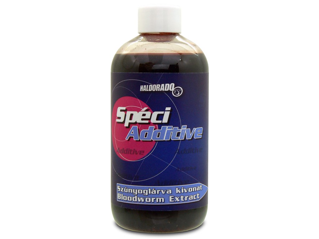 Speciadditive prísada nie je umelo vytvorená a vyrobená tekutá aróma ale práve naopak je to čisto prírodný rastlinný a živočíšný výťažok ktorý má priaznivý účinok pre ryby.Tieto tekutiny výborne pracujú aj v tých najchladnejších vodách a ryby ich inštiktívne vyhladávajú lebo rozpoznajú stopové prvky,minerálne látky,vitamíny ktoré tieto tekutiny obsahujú.Tieto tekuté prísady sú určené na zvýraznenie pachovej stopy návnady a výrozne zvyšuje biologickú hodnotu každého krmiva ,peliet,boiliesov,stick mixov a semienok.