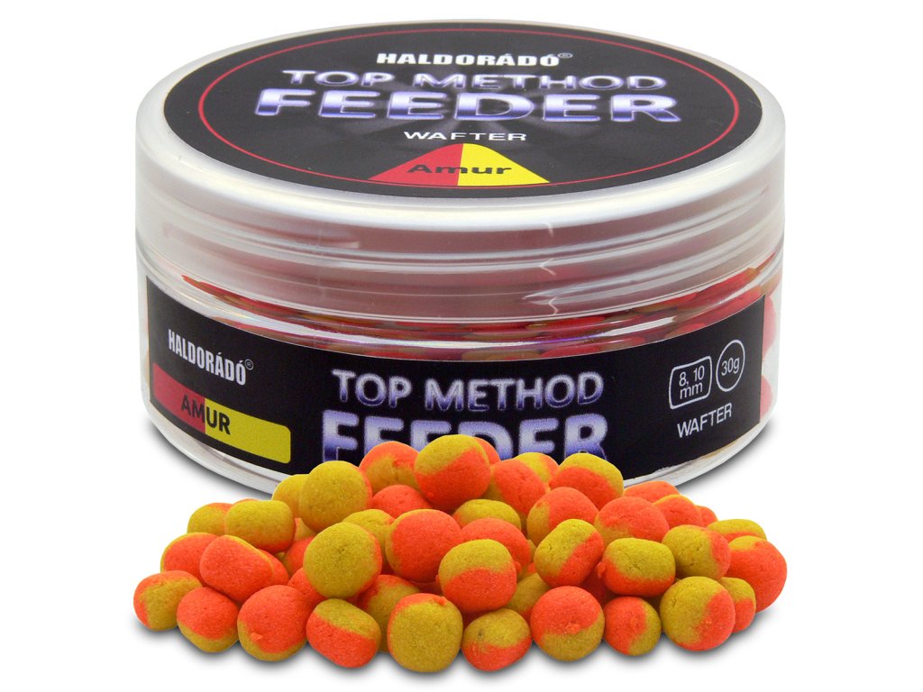Každý člen produktového radu Top Method Feeder slúži na lov rýb špecifickým spôsobom. Nástrahy Top Method Feeder Wafter majú mierny vztlak a sú dimenzované tak, aby pasovali na najpopulárnejšie method háčiky a návnadové hroty. Samozrejme, návnady Top Method Feeder sú dostupné aj v troch rôznych verziách a v prevedení špecifických pre ryby. Verzia Amur je ochutená morskými riasami, ostricami a zelenými bylinkami a má oranžovú + citrónovo žltú farbu. Caras má medovú a korenistú príchuť a je bielej + citrónovo žltej farby, kým White Carp má príchuť vanilky a zmesi korenia a je tmavohnedej + bielej farby! Veľkosť návnad bola prispôsobená skutočnej rybe, takže Amur je dostupný v krabičke s činkami 8-10 mm. Krabička Caras obsahuje 6 mm činky a 7 mm návnady v tvare guľky, kým biely kapor sa dodáva v 6-8 mm činkách a 7-9 mm guľôčkových návnadách.