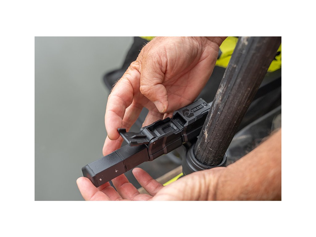 - Uvoľnenie tlačidlom umožňuje uvoľnenie predlžovacích ramien a možno vložiť XL ramená.
