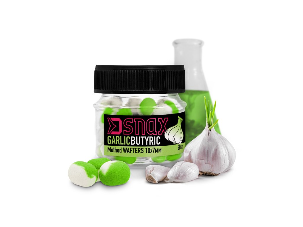 D SNAX WAFT predstavuje ucelenú sériu, neutrálne vyvážených nástrah, ktorým budú ryby pod vodnou hladinou len veľmi ťažko odolávať. Podstata neutrálne vyváženej nástrahy spočíva v tom, že sa nad dnom jemne nadnáša, vďaka čomu ju ryba omnoho ľahšie nasaje. Svoje využitie nájdu najmä pri feedri, ale rovnako dobre ich je možné použiť aj pri kaprárine. Vďaka svojej prepracovanej štruktúre výborne držia na nástrahových ostňoch, ale taktiež je možné ich pomocou tenšej ihly navliecť na slučku pod háčik. Použité esencie zaručujú, že vaša nástraha bude atraktívna počas dlhej doby. D SNAX WAFT sú vyrábané v tvare valčeka s rozmerom 10x7mm, v atraktívnych farebných kombináciách a v osvedčených príchutiach, ktoré ryby rozhodne nenechajú chladnými. Nástrahy sú balené po 20g v praktických uzatvárateľných fľaštičkách, ktoré sa ideálne vojdú do vašej príručnej tašky. Za účelom zachovania atraktivity nástrahy dlhodobo nevystavujte priamemu slnečnému žiareniu a fľaštičky nenechávajte otvorené. Príchuť: Cesnak-Butyric / Biela-Zelená V momentoch kedy všetko ostatné zlyháva je tu práve Cesnak-Butyric. Veľmi silná, prenikavá príchuť a výrazná zeleno-biela farba vytrhne z letargie aj opatrné ryby. Pozor! Je to naozaj sila! Upozornenie: Fotografie sú ilustračné.