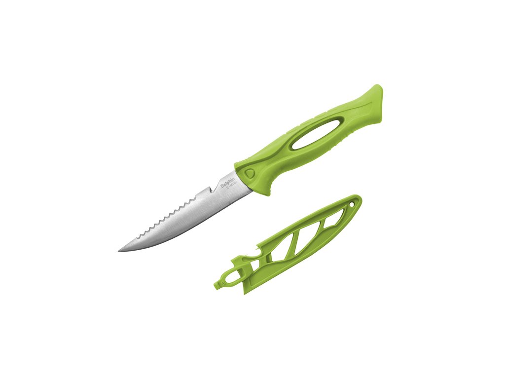 Všestranný nôž B-MINI s kombinovaným ostrím je "pracant" na slovo vzatý. Môžete s ním rezať, píliť (keďže v hornej časti čelepe sa nachádzajú pílové zuby), odblankujete kábel, alebo dokonca otvoríte pivo. Pre zníženie hmotnosti má plastová rukoväť vybratú väčšiu jej časť. Nôž sa dodáva v praktickom plastovom puzdre, ktoré je na čepeli bezpečne zakliknuté. B-MINI sa predáva v balení po 10 kusov. Technické parametre: Celková dĺžka: 214mm Dĺžka čepele: 98mm Výška čepele: 19mm Hrúbka čepele: 1,5mm Materiál čepele: nehrdzavejúca oceľ Hmotnosť: 47g
