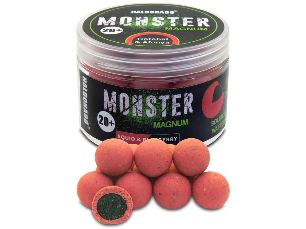 Členovia produktovej rady MONSTER nie sú preslávení príjemnými vôňami, ktoré si môže vychutnať ľudský nos, no ich chytľavosť je nespochybniteľná! Okrem návnad a kŕmnych peliet je jasné, že tento produktový rad nájdete v našej ponuke aj vo forme arómy. MONSTER Magnum má všetky výhody rozpustných a varených nástrah, pretože ide o nástrahu, ktorej stred je varený, ale vonkajšia vrstva je rozpustná! Vnútorné jadro má priemer 14 mm, vyvážené korkom mletá, varená, nerozpustná návnada. Vonkajšia vrstva má hrúbku 6 mm a neustále sa rozpúšťa a uvoľňuje lákavé chute. Jeho používaním sa vyhneme premočeniu našich nástrah, pretože vnútorná, varená časť vydrží až 72 hodín, kým doba rozpúšťania vonkajšej časti je 2-3 hodiny (v závislosti od teploty vody). Veľmi atraktívna, veľmi nápadná nástraha, ktorú je možné použiť pri krátkodobom love veľkých rýb metódou feeder a cieľavedomom love veľkých rýb na boilies. Odporúča sa najmä pri love nátlakových, často chytaných, opatrných, kapitálnych rýb, ale prekvapivo sa osvedčil aj pri love na divokej vode a Dunaji, vyberaní a chytaní kaprov revíru! Je dostupný v štyroch typoch klieští: Jadro Liver & Blood je červené, farba rozpustnej vrstvy je hnedá, jadro Squid & Cranberry je čierne, farba rozpustnej vrstvy je ružová, jadro Red Salmon je tmavo hnedé, farba rozpustnej vrstvy je tmavo bordová a Jadro Hot Mango je oranžové, farba rozpustnej vrstvy je biela.