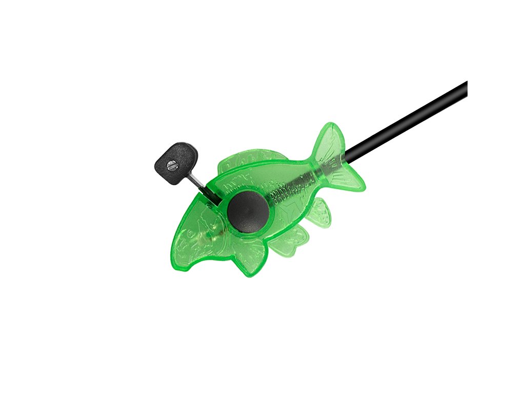 Originálny a nezameniteľný signalizátor záberu so zabudovanou LED diódou a prvkami, ktoré tento produkt posúvajú o krok vpred pred iné modely z daného segmentu. Hlava signalizátora je navrhnutá v jedinečnom tvare kapra. To nepochybne poteší množstvo priaznivcov kapráriny a zároveň sa výrazne odlíši od všetkých bežne predávaných modelov na trhu. Je osadená guľôčkovým mechanizmom s možnosťou nastavenia tlaku pomocou aretačnej skrutky. Tým, že mechanizmus je tvorený guličkami, trecia plocha je minimálna a preto nedochádza k stlačeniu vlasca počas zasekávania. Hlava je vyrobená z tvrdeného, matného plastu pre zvýšenú odolnosť voči mechanickému poškodeniu. Doslova revolučným prepracovaním prešla uchytávacia časť ramienka signalizátora, na ktorú sme ako prví aplikovali dva dômyselne navrhnuté prvky. Jedná sa o obrovskú prednosť kompletne navrhnutú inžiniermi vývojového oddelenia značky Delphin. Prvým z nich sú zárezy po bokoch, ktoré slúžia na jednoduché uchytenie káblika počas transportu. Vďaka tomu nebude dochádzať k neželanému motaniu, či zachytávaniu o iné komponenty výbavy. Tento prvok označujeme ako CABLE MANAGER. Druhým bonusom je drážka nazvaná ARM STOPPER. Zjednodušene je to držiak na spodnej časti nohy, plniaci dve významné úlohy. Prvou z nich je možnosť zaistenia kovového ramienka tak, aby po skončení lovu kompaktne držalo spolu s nohou. Najväčšou devízou je však omnoho rýchlejšie zastavenie kývania signalizátora počas záseku. Znamená to, že akonáhle zdvihnete prút a vlasec sa uvoľní z hlavy, tak sa CARPY veľmi rýchlo zastaví v zvesenej polohe. Obvykle to nášmu systému trvá len 3-4 kmity. V porovnaní s bežne predávanými signalizátormi, ktoré ste doteraz poznali to znamená omnoho väčšiu životnosť plastovej nohy a kĺbu, v ktorom je spojená s kovovým ramienkom. Samozrejmosťou je posuvné závažie na kovovom ramene umožňujúce optimálne vyšponovania vlasca. Delphin CARPY je osadený konektorom pre zapojenie do elektronického signalizátora záberu. Po zapojení sa pri zábere rozsvieti vnútorná LED dióda, ktorá vydáva tlmené svetlo podľa farby hlavy a umožňuje tak sledovať záber aj počas noci. Ako bonus je k baleniu dodávaný náhradný držiak pre upevnenie k elektronickému signalizátoru záberu. V prípade straty alebo poškodenia tak máte k okamžitej dispozícii náhradný držiak, bez nutnosti kupovania ďalšieho. Dostupné farby hlavy : modrá, červená, zelená, žltá, fialová, čierna.