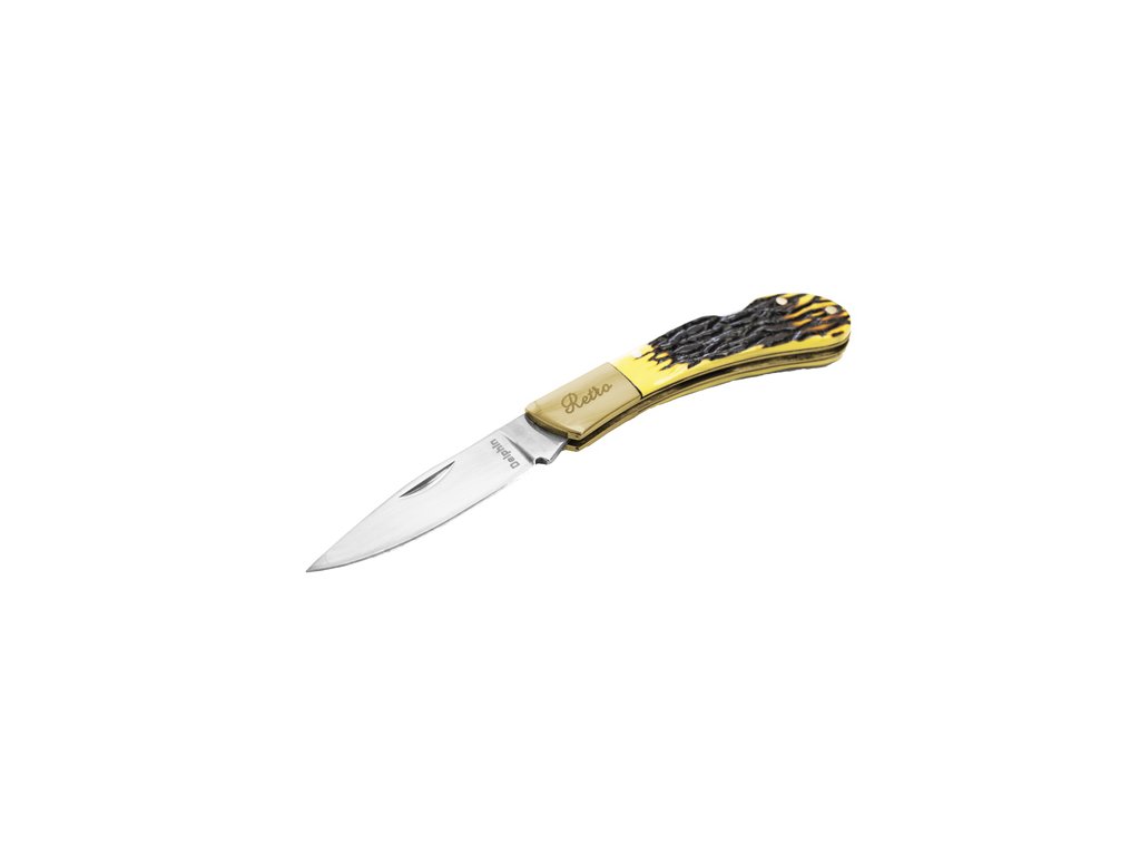 Pamätáte sa na jeden z vašich prvých nožov? Možno vyzeral presne takto. RETRO je malý zatvárací nôž, ktorý nájde svoje uplatnenie pri jednoduchej príprave jedla na rybách, v kempe či na horách. Rukoväť je tvorená kombináciou kovu a imitáciou paroha. Tlačná poistka zabezpečuje bezpečnosť pri práci. RETRO je skvelým nožíkom na opekačky, alebo ako záložný nôž na ryby a na túry. Technické parametre: Celková dĺžka: 160mm Dĺžka čepele: 70mm Výška čepele: 15mm Hrúbka čepele: 2mm Materiál čepele: nehrdzavejúca oceľ Hmotnosť: 68g