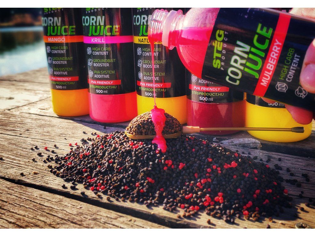Kŕmnu hmotu navlhčenú Corn JUICE je možné skladovať veľmi dlho bez chladenia pri zachovaní pôvodnej kvality. Dá sa efektívne využiť aj na PVA rybolov. PVA zmesi a pelety je potrebné pred použitím posypať KUKURIČNÝM ŠŤÁVOM a počkať, kým granule absorbujú látku.