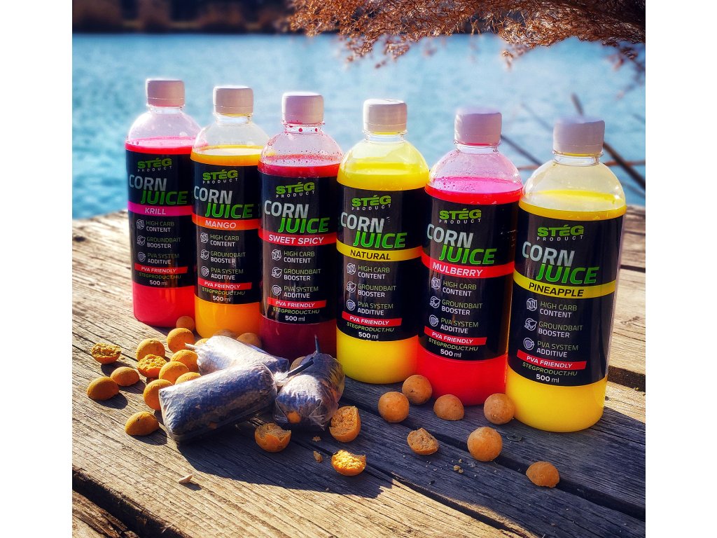Kŕmnu hmotu navlhčenú Corn JUICE je možné skladovať veľmi dlho bez chladenia pri zachovaní pôvodnej kvality. Dá sa efektívne využiť aj na PVA rybolov. PVA zmesi a pelety je potrebné pred použitím posypať KUKURIČNÝM ŠŤÁVOM a počkať, kým granule absorbujú látku.