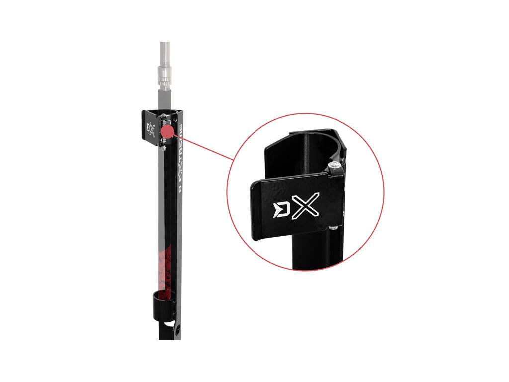 K fixácií sumcového prúta na stojane slúži robustná klapka v hornej časti, ktorá zabráni nechcenému vyskočeniu prúta pri zábere. Spolu s držiakom na prút, ktorý je na stojane osadený pomocou silných zvarov, bude nahodený prút na stojane stabilný za akýchkoľvek okolností. Aby sa predišlo nechcenému hromadeniu vody, na spodku držiaka sú umiestnené dva výrezy.
