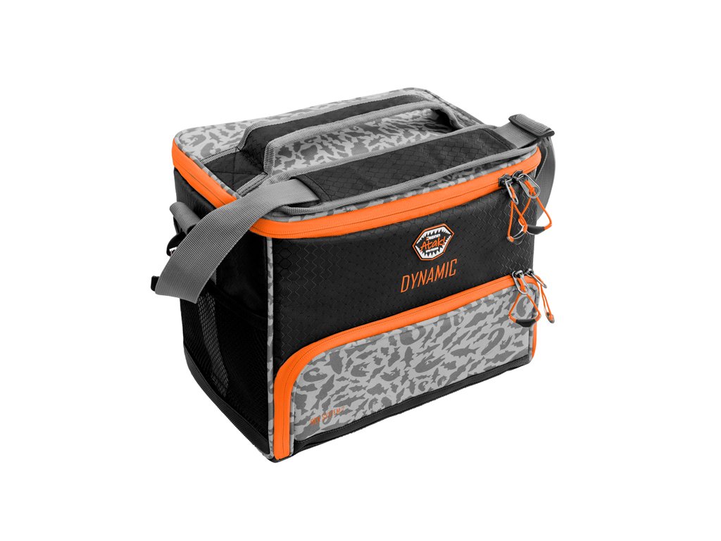 Praktická taška zo série ATAK! navrhnutá najmä pre lovcov dravých rýb, ktorí radi lovia dynamicky a chcú prebádať všetky zaujímavé miesta revíru. Vo vrchnej časti tašky sa nachádza úložný priestor s nastaviteľnou deliacou prepážkou, vďaka ktorej si vždy usporiadate a uložíte veci tak ako potrebujete. Na vnútornej strane veka je navyše priestranné zipsovateľné, vrecko, ktoré taktiež pojme časť výbavy potrebnej k lovu a vďaka jeho sieťovanému prevedeniu budete mať vždy prehľad o tom čo sa v ňom práve nachádza. Spodná časť tašky disponuje priestorom, v ktorom nájdete dva praktické plastové boxy na nástrahy a iné príslušenstvo. Boxy sú od seba oddelené odnímateľnou prepážkou a taktiež vo vnútri boxov sa nachádzajú prepážky, ktoré je možné usporiadať podľa potreby. Je teda len na Vás ako si celkový úložný priestor prispôsobíte a čo doňho uložíte. Po bokoch tašky sa nachádzajú sieťované vrecká, ktoré obsiahnu rôzne drobnosti, a ktoré len podčiarkujú celkovú praktickosť tohto produktu. Taška bola navrhnutá s dôrazom na praktickosť, trvácnosť a odolnosť. Je zo všetkých strán osadená polstrovaním pre maximálnu ochranu vášho príslušenstva vo vnútri. Celá spodná časť tašky je osadená vystuženou, nepremokavou vrstvou, ktorá dovoľuje položenie tašky na mokrý povrch. To ešte viac prispieva k tomu, že taška je aj na spodnej strane mimoriadne stabilná a drží si svoj tvar. Kvalitné vonkajšie zipsy oranžovej farby sú vybavené plastovými ťaháčikmi na oranžovom popruhu. Taháčiky sú na konci rozšírené, a preto je ich možné rýchlo uchopiť. Doplnky oranžovej farby umožňujú rybárovi, aby bola taška dobre viditeľná aj za šera a vedel ju okamžite nájsť. Taška je ušitá z ľahkej, ale pritom odolnej látky čiernej farby. Vybavená je sivým popruhom určeným pre nosenie cez rameno. Dizajn tašky dopĺňa naša jedinečná sivá ATAK! kamufláž so siluetami dravých rýb. Technické parametre: Rozmer tašky: 32x21x25cm Rozmer vrchného priestoru: 30x20x10cm Rozmer spodného priestoru: 30x20X10cm Rozmer bočného vrecka: 20x15cm Rozmer krabice: 27x18x4cm Plastový box Rozměr: 270x180x40mm Počet pevných přihrádek: 6 Rozměr přihrádky: 4,3 x 17,1 x 3,5 cm Počet vkladateľných složek: 12 Krabice kterou si můžete k tašce dokoupit: Krabice Delphin TBX One 273-6P-clip