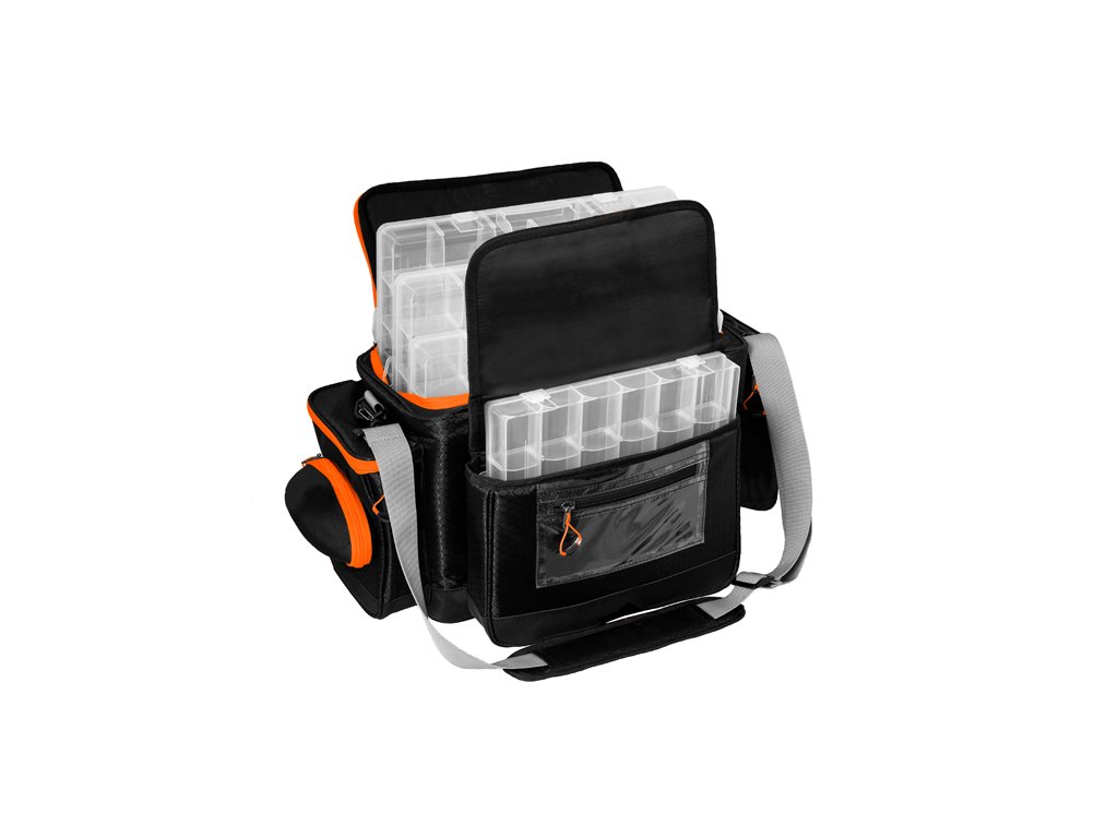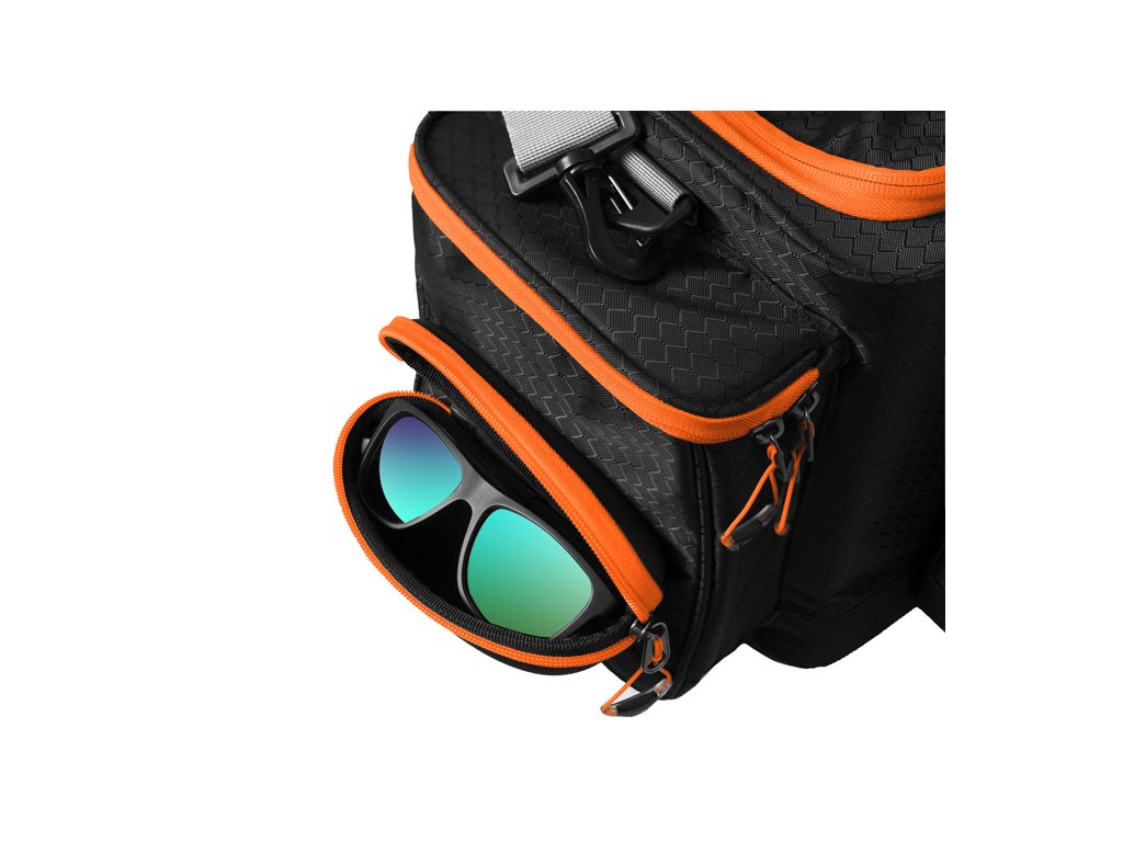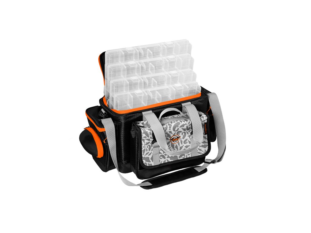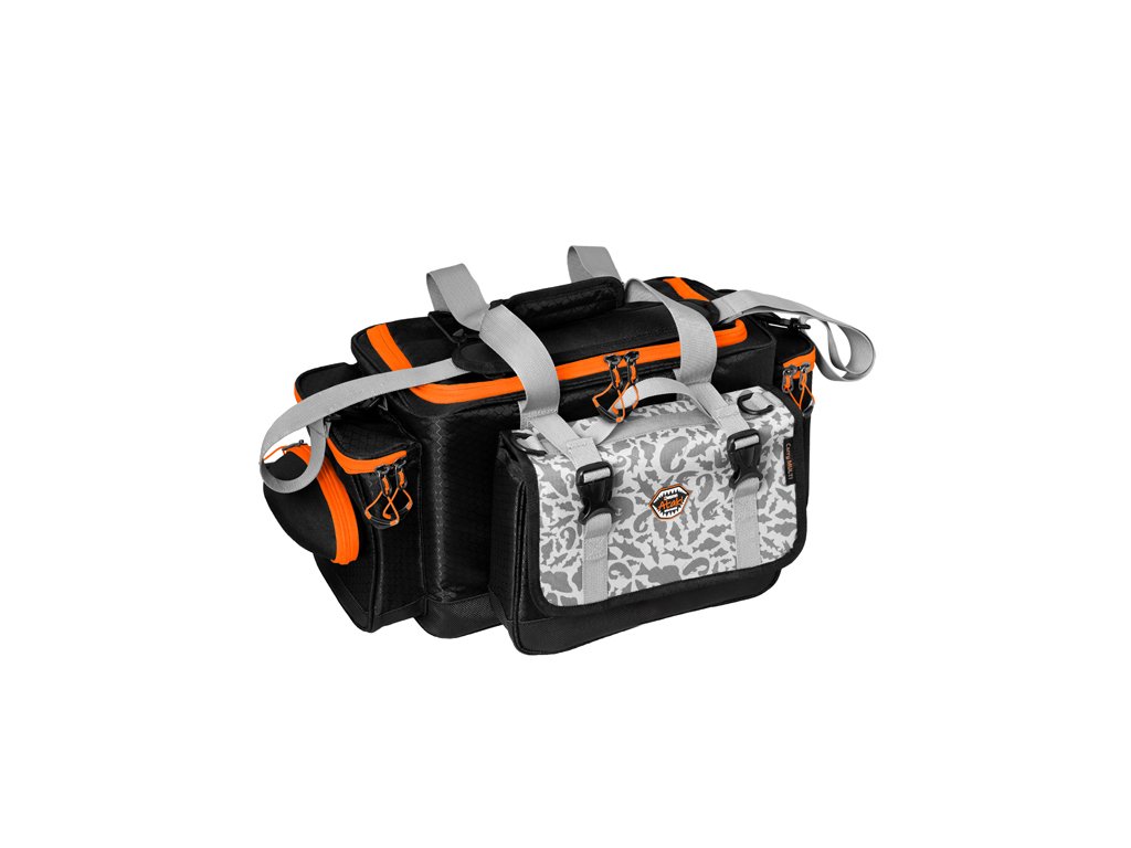 Delphin ATAK! CarryAll Multi je taška určená predovšetkým pre priaznivcov prívlače, ktorá ponúka mnoho praktických riešení v jednom balení. Je vybavená dvomi bočnými vreckami. Na ľavej strane je vrecko dopnené o puzdro na okuliare a na pravej strane je vrecko doplnené o držiak peánu, alebo klieští. V prednej časti nájdeme malú odnímateľnú tašku, ktorú je možné ľahko pripnúť alebo odopnúť pomocou plastových klipov. Je vybavená aj dvomi úchytmi, na ktoré je možné pripevniť popruh z hlavnej tašky a je možné ju nosiť oddelene. Odnímateľná taška je vybavená jednou plastovou krabicou s odnímateľnými vnútornými prepážkami. Na prednej časti sa nachádza plastové vrecko z priehľadného materiálu vybavené zipsom. Hlavný úložný priestor ukrýva 4 veľké plastové krabice s odnímateľnými vnútornými prepážkami. Navrhnutá bola s dôrazom na praktickosť, trvácnosť a odolnosť. Taška je zo všetkých strán osadená polstrovaním pre maximálnu ochranu Vášho príslušenstva vo vnútri. Celá spodná časť tašky je osadená vystuženou, 5cm vysokou, nepremokavou vrstvou, ktorá dovoľuje položenie tašky na mokrý povrch. To ešte viac prispieva k tomu, že taška je aj na spodnej strane mimoriadne stabilná a drží si svoj tvar. Kvalitné vonkajšie zipsy oranžovej farby sú vybavené plastovým ťaháčikom na oranžovom popruhu, ktorý je na konci rozšírený, a preto je možné ho rýchlo uchopiť. Doplnky oranžovej farby umožňujú rybárovi, aby bola taška dobre viditeľná aj za šera a vedel ju okamžite nájsť. Taška je ušitá z ľahkej, ale pritom odolnej látky čiernej farby. Tašku je možné nosiť pomocou ramenného popruhu alebo dvoch ručných popruhov sivej farby. Dizajn tašky dopĺňa naša jedinečná sivá ATAK! kamufláž so siluetami dravých rýb. Technické parametre: Rozmer tašky: 60x31x27cm Čistý rozmer vnútorného priestoru: 38x22x25cm Rozmer bočné vrecko malé: 18x18x6cm Rozmer odnímateľnej prednej tašky: 20x18x8cm Rozmer krabice: 35.5 x 22 x 4.7cm Počet priehradok: 4-24 Možnosť náhradnej krabice: TBX One 360 - 1P Clip WP, TBX One 360 - 4P Clip WP, TBX One 350 - 5P Clip, TBX One 350 - 8P Clip
