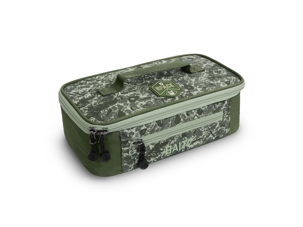 Delphin SPACE je označenie pre exkluzívnu sériu tašiek z dielne značky Delphin. Vyznačuje sa špičkovým spracovaním, kvalitnými zipsami, ale najmä výnimočným dizajnom s použitím C2G kamufláže. BAITZ je kompaktná taška, špeciálne navrhnutá na uskladnenie a prenos dipovaných nástrah. V základe obsahuje 6 kusov transparentných plastových dóz s vekom a tesnením. Vďaka tesneniu môžete do dóz bez obáv uskladniť nadipovaný boilies, pelety, či iné nástrahy. Vo vnútri tašky sa nachádzajú prepážky, ktoré vytvárajú šesť rovnakých individuálnych priehradok. Práve v týchto priehradkách budú dózy s nástrahami vždy dokonale organizované a pripravené na použitie. Steny a veko tašky sú dôkladne polstrované 6mm hrubou výstelkou, ktorá chráni vnútorný obsah pred mechanickým poškodenením. Veko tašky je opatrené sieťkovým vreckom zo zipsom, do ktorého je možné uskladniť dodatočné rybárske príslušenstvo. Veľkou výhodou je menšie vrecko na prednej strane, slúžiace na uloženie ihiel alebo zarážok pre rýchlu prípravu montáže. Kompaktné rozmery tašky spolu s textilnou rukoväťou umožňujú jednoduchý prenos. Technické parametre: Vonkajšie rozmery: 30x17x10cm Veľkosť priehradky: 8,5x8x7,5cm Počet priehradok: 6 Rozmer dózy: 6,7x8,5cm Objem dózy: 250ml