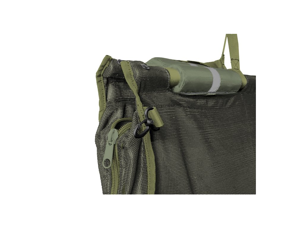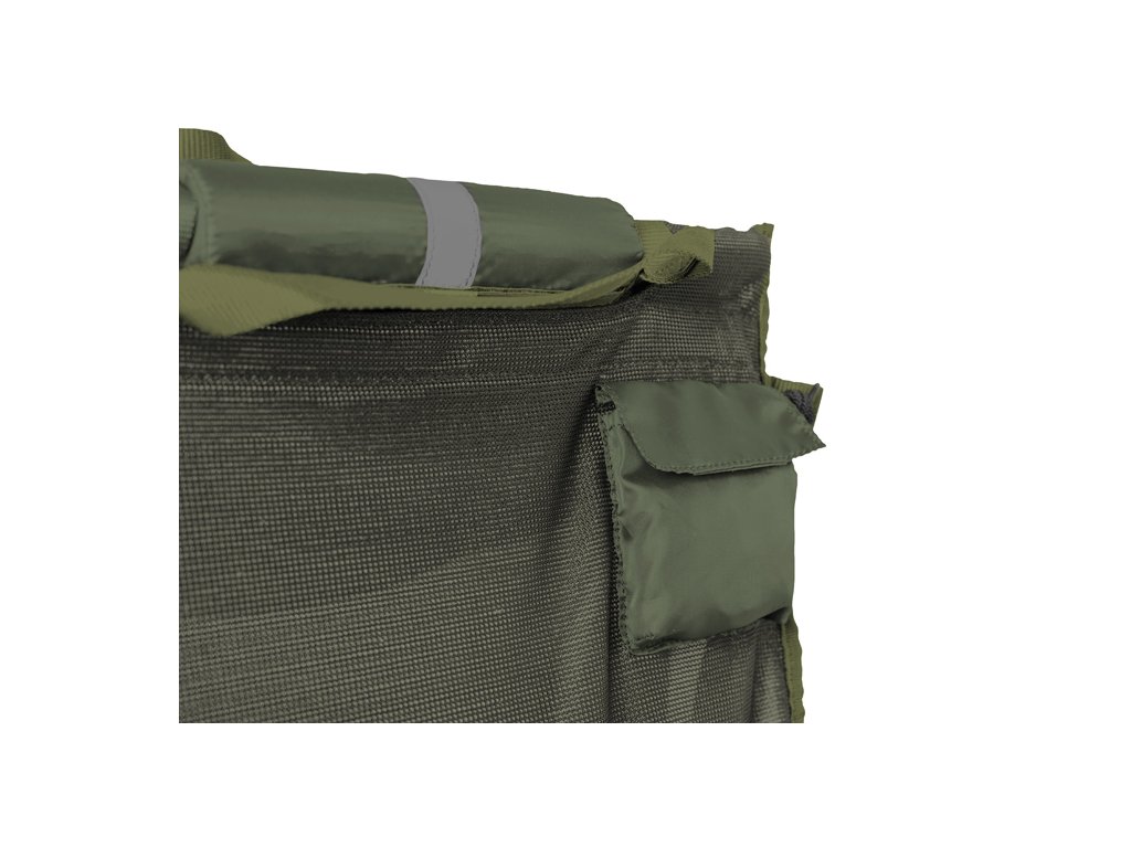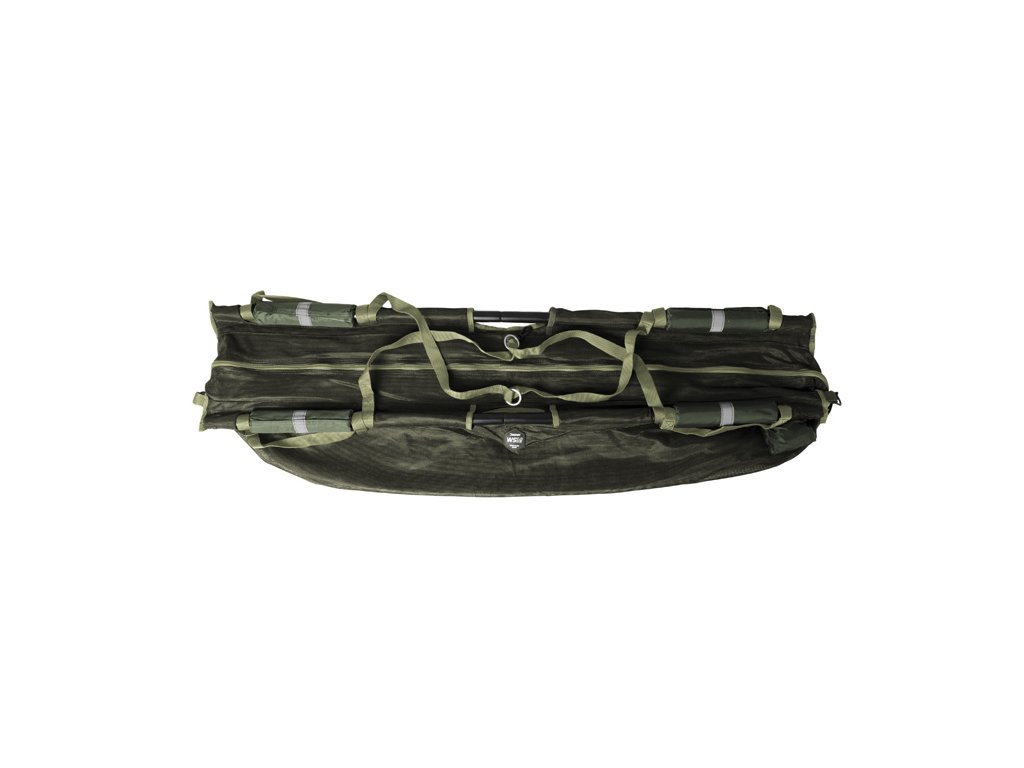 Vážiaca taška vyrobená z pevného sieťovaného materiálu, ktorú možete vďaka plavákom a sieťovanému materiálu použiť aj ako prechovávací sak pred tým, ako rybu zvážite, či pustíte. Vďaka reflexným páskam na plavákoch uvidíte tašku po zasvietení čelovkou vo vode aj po tme. Sieťovaný materiál okrem toho znižuje celkovú hmotnosť tašky a pri dvíhaní a manipulácii s rybou všetka voda vytečie, teda nepreťažuje sa materiál a umožňuje aj presnejšie váženie. Masívny zips je po oboch bokoch tašky a takisto na vrchnej časti, to znamená, že WSM dokážete takmer celú rozzipsovať pre príjemnejšiu manipuláciu s rybou. Pevné hliníkové trubky s priemerom 25mm je možné bez problémov zložiť, aby pri transporte nezaberali miesto. Vďaka dlhým textilným popruhom je zavesenie na trojnožku veľmi komfortné a jednoduché. Tieto popruhy majú kovové oká na zavesenie tašky na hák váhy a pod. Na bežné prenášanie poslúžia štyri kratšie popruhy v rohoch tašky. Samozrejmosťou je kotviaca šnúra s dĺžkou až 4,5m a so závitom na konci. Vďaka tomuto systému je kotvenie na brehu veľmi bezpečné. Šnúra je umiestnená v integrovanom a diskrétnom vrecúšku na boku tašky. Vo vrchnej časti a takisto na boku sa nachádza klip, ktorý slúži na fixovanie bežcov zipsa, aby nedošlo k neželanému otvoreniu tašky, alebo je možné klipy použiť ako ďalšie body na kotvenie. Technické parametre: Rozmery: 125x45x30cm Transportné rozmery: 70x20x15cm Hmotnosť: 1,5kg Nosnosť: 50kg